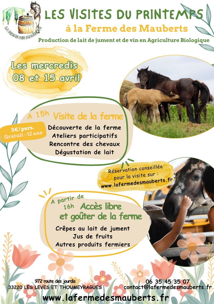 Les mercredi 8 & 15 avril 2026, retrouvez-nous pour une visite de la ferme suivi d’un gouter.